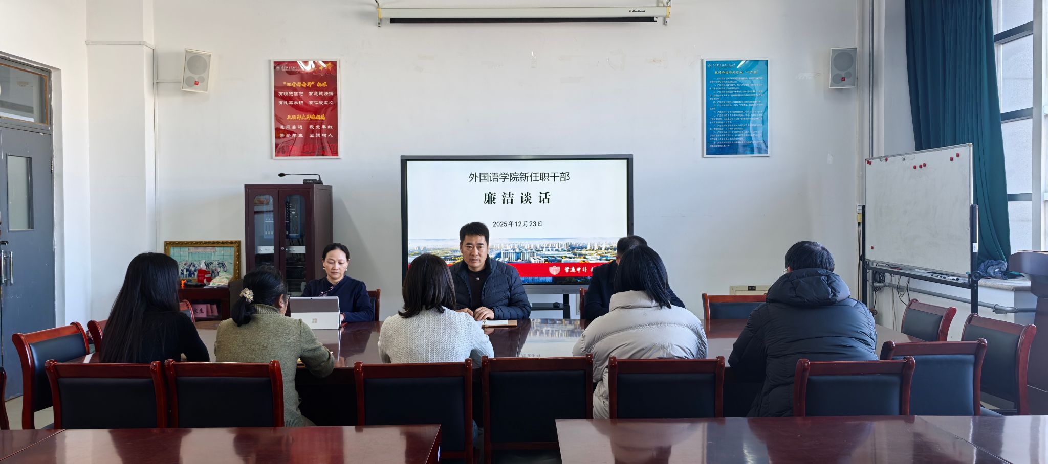 【通讯员 蔡莺】12月23日,耽美漫画 召开新任职干部廉洁谈话会,进一步提升学院新任干部廉洁自律意识,筑牢思想防线,助推学院各项工作高质量发展。学院纪委书记李刚,纪委委员朱晓毅、蔡莺,新任职教研科科长沈翼飞,英语系主任王春楠、主任助理邱肖,大学英语教学一部主任李红霞、主任助理李艳梅参加会议。李刚结合学院工作实际,从“提高政治站位,履行一岗双责”“严于律己,严守各项纪律”“带头改进作风,服务师生”三个...