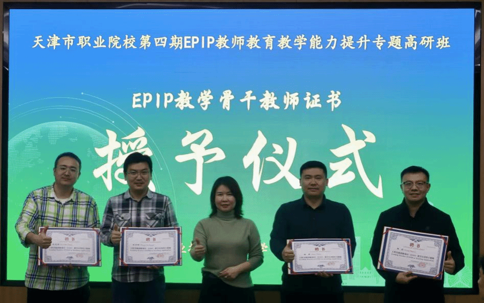翟风杰向圆满完成本次研修的16位学员表示热烈祝贺,并表示,此次高研班的成功举办,有助于持续深入推进职业教育EPIP教师教育教学能力的提升。希望大家把对EPIP的学思践悟带回各自工作岗位,把EPIP教学模式应用到各自学科领域的教学和管理工作实践中,不仅要成为EPIP教学模式的笃行者,更要成为EPIP教学研究与应用推广专家,成为助力天津职业教育高质量发展、助力构建中国职业教育话语体系事业的中流砥柱。