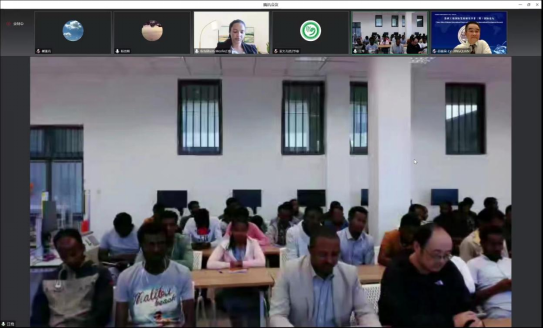 埃塞俄比亚职业教育孔子学院中方院长江绛在致辞中说:“职业教育孔子学院扎根埃塞十余年,为埃塞年轻人学习中文,了解中国文化,增进与中国的友谊做了很多工作。中国是埃塞非常重要的贸易和投资伙伴,中埃间互惠互利的经贸往来越来越频繁,此次线上交流项目能够为埃塞学员们提供学习中文、了解中国职业教育文化的机会。”他鼓励学员们抓住机遇,为自己光明的前途,为两国灿烂的未来,认真学习,努力工作,享受中文学习,结交中国朋友,有缘在中国相见。