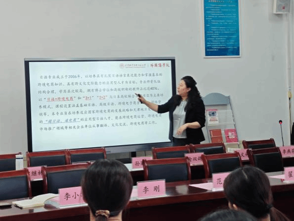 在专业解读环节,英语系张健稳、日语系金双鸽、汉教系孙丽丽和俄语系敬如歌四位专业负责人依次登台,结合各专业特色,详细讲解了人才培养方案、课程体系设置和职业发展前景,针对家长关心的专业学习问题进行了专业解答。教学秘书沈翼飞和辅导员李小华则分别就教学管理制度、学生日常管理规范等家长关切的事项作了具体说明,为新生适应大学生活提供了实用指导。