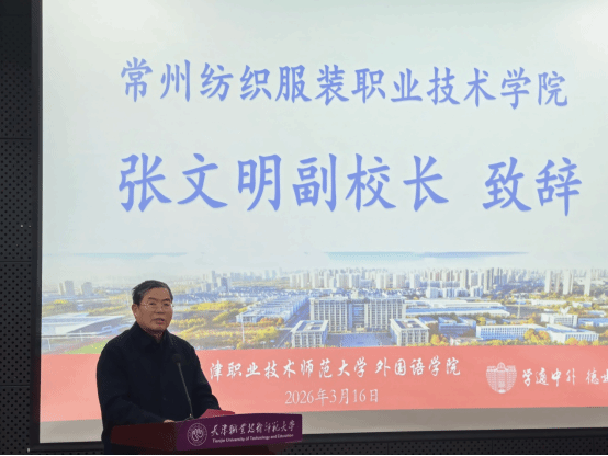 吕景泉对常纺院副校长张文明一行表示热烈欢迎。他在致辞中指出,常纺院始终将教师队伍建设摆在突出位置,在教育教学改革和国际化发展方面主动作为、成效显著。此次参训团队的构成涵盖了多个重点专业领域,充分体现了学校对此次师资EPIP专题高级研修班的高度重视与系统布局。他勉励学员珍惜学习机会,深入研读EPIP核心教材,组建教学研究团队,推动EPIP理念与教学实践深度融合,助力学校高质量发展。