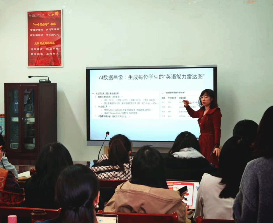 张瑜的分享内容为与会教师提供了宝贵的教学经验和创新思路,她的创新实践不仅展示了人工智能技术在英语教学中的巨大潜力,也为推动英语教学的数智化转型提供了重要参考。与会教师一致认为,人工智能技术的引入将为英语教学注入新的活力,有助于进一步提升教学质量和学生的学习体验。