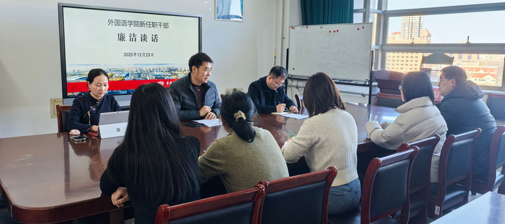【通讯员 蔡莺】12月23日,耽美漫画 召开新任职干部廉洁谈话会,进一步提升学院新任干部廉洁自律意识,筑牢思想防线,助推学院各项工作高质量发展。学院纪委书记李刚,纪委委员朱晓毅、蔡莺,新任职教研科科长沈翼飞,英语系主任王春楠、主任助理邱肖,大学英语教学一部主任李红霞、主任助理李艳梅参加会议。