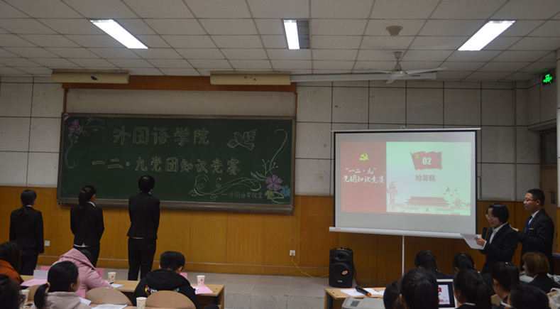 比赛分为必答题、抢答题、计时题、附加题四个环节,比赛内容以“一二·九”爱国运动知识、中国共产党党史和习近平总书记系列重要讲话精神为主,2016级各班以班级为单位组建代表队参赛。同时,还为观众设置了抢答题和“红歌猜猜猜”游戏,使更多同学参与到比赛中来。现场气氛活跃,参赛选手展现了对党团知识的掌握能力和灵活应变能力。比赛评出最佳组织奖、个人奖项若干。
