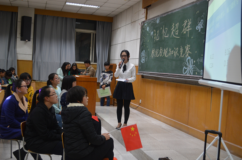 在阶梯201教室举办“‘纪’忆超群”校纪校规知识竞赛,考察新生对《学生手册》、《学生学习手册》的掌握情况,引导新生共同了解、落实校纪校规。院党委副书记王爱敏、辅导员汪曼到场观摩。