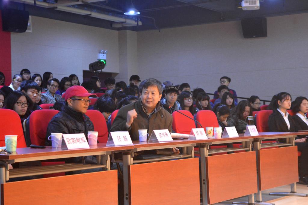 欧阳校友首先向师弟师妹们热情问好,一句“回家的感觉真好”瞬间拉近了同学们与两位校友的距离。欧阳校友从自己由老师再到企业高管而后辞职创业继而进行创业培训的丰富经历说起,启发同学们“选择比努力更重要”,要从当前开始考虑自己的职业规划,在学习专业知识的同时注意拓宽视野,选择自己真正感兴趣的行业,然后坚持自己的选择。