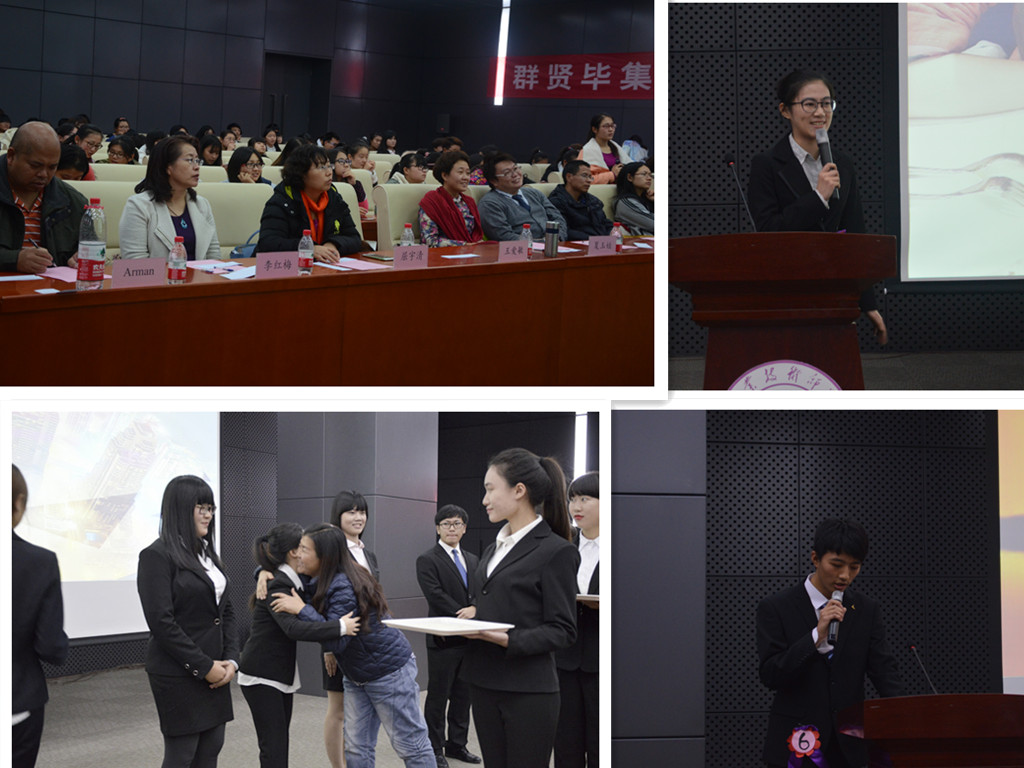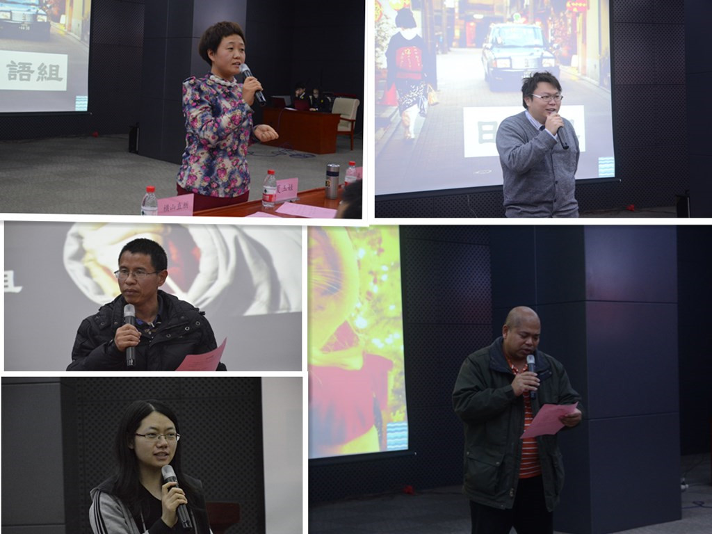 、电子工程学院、汽车学院、信息学院、艺术学院的26位选手依次选用英语、日语和汉语进行了绕口令和Rap展示,将三种语言特有的节奏与韵律展现得淋漓尽致,赢得了现场观众的阵阵欢呼。各位评委老师分别对各组比赛情况进行了点评,外籍教师Arman和横山植樹指出:同学们参加比赛的热情和对语言的热爱让人感动,绕口令对语言发音要求很高,连音和错音的区分非常微小,而对句意的理解是保持语速和发音正确的前提条件,希望各位同学把功夫下在平时,争取更大的进步。