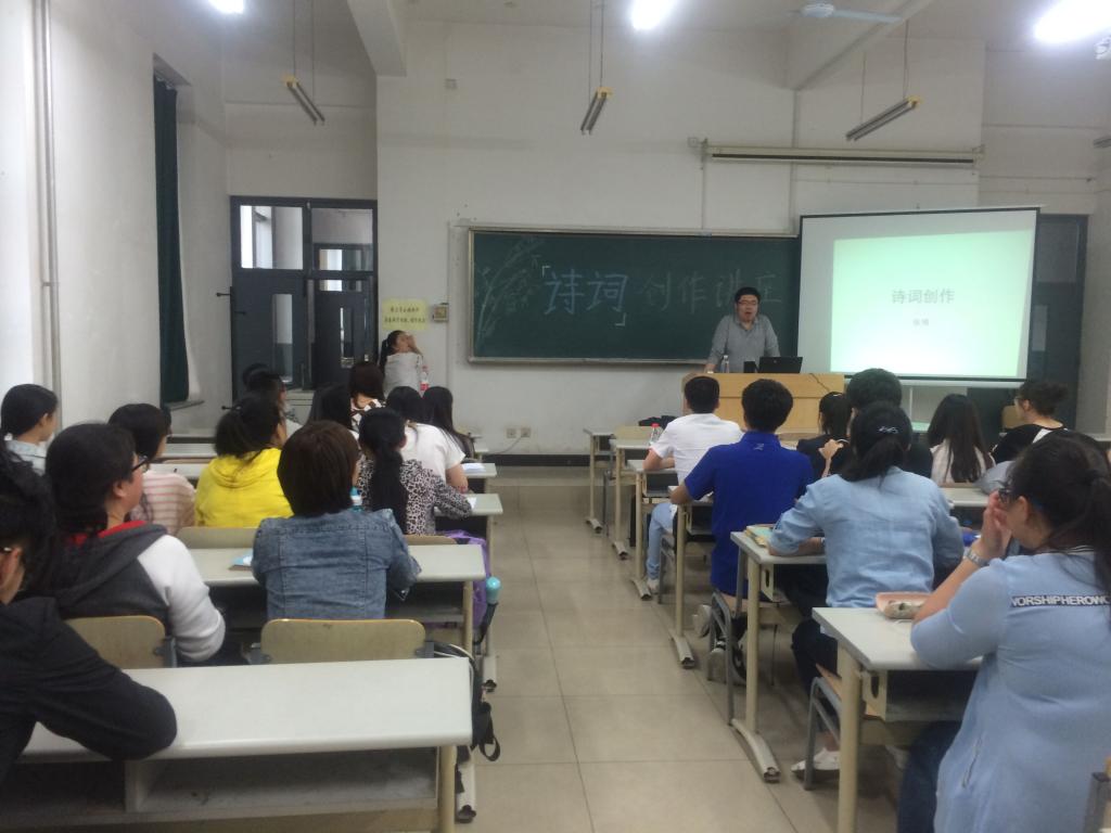 张博一开场就以幽默的语言风格博得了同学们的阵阵掌声,接着,他提出大学生应该具有学习诗词的意识,并举例说明了如何培养作诗的意识。随后,张博讲述了中华诗词几千年以来的发展规律,分析了各个阶段的诗词发展状况,希望当代大学生理性地看待中华传统诗词在发展中存在的问题,并且努力在大学生中培养诗词创作的文化氛围,提升大学生的文化修养。