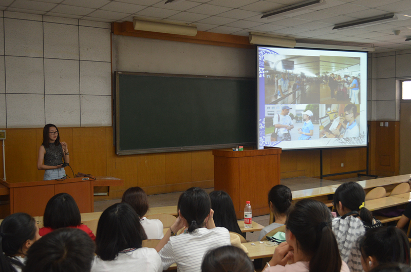 党委副书记王爱敏老师为全体新生做“生涯发展规划”主题讲座。王爱敏用“Who am I?我是谁”、“Where do I come from?我来自哪里”、“Where shall I go?我要去何方”、“How can I do?我如何去做”四个哲学问题引发学生思考,指导学生正确认识自我、树立自信;根据国家的经济、教育、外交事业的发展形势,思考和确立个人发展目标。同时,为同学们详细讲解了大学每个年级和阶段的努力方向,鼓励同学们树立自信、提高师范素养、珍惜和记录大学生活。