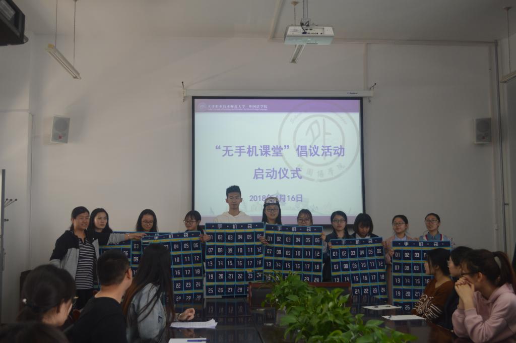学生会向全院同学发出倡议,她倡议同学们要为了自己的理想与未来,提高课堂学习效率,从现在做起,给手机放个假,打造“无手机课堂”,用实际行动为学校迎评工作贡献力量。随后,辅导员安文浩老师为各班分发手机袋并介绍其使用方法和管理办法,每个收纳袋上有30个小口袋,同学们进入教室后,把手机关机或调至静音状态,放进自己专属的小口袋里,课后再自行领回手机。