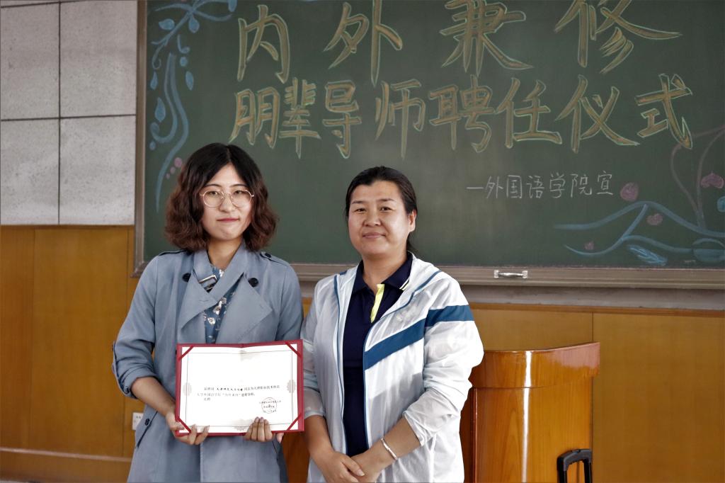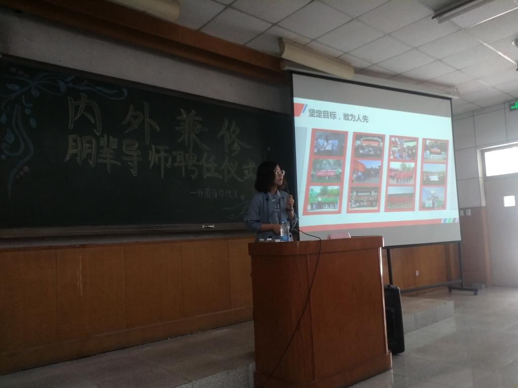 “内外兼修”朋辈导师计划目的在于通过不同类型的朋辈导师的指导和引领,为不同群体的学生成长成才提供具有针对性的榜样示范,激发同学们的上进心,开阔同学们的发展路径,提升同学们的生涯发展规划能力。王爱敏为刘婷老师颁发聘书并致辞,她希望全体学生会成员要以刘婷老师为榜样,提升领导力。科学的规划大学生活,要励志,力行,知行合一,做全面发展的人。