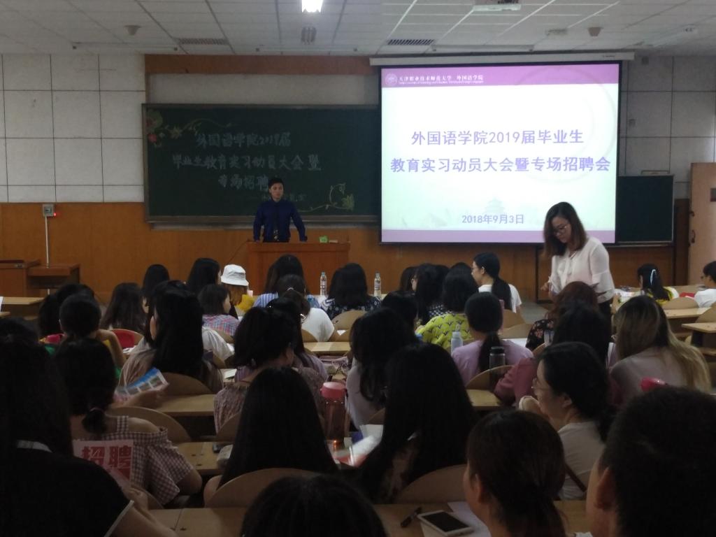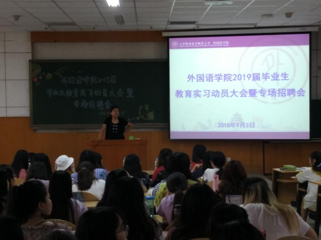 举办2019届毕业生教育实习动员大会暨专场招聘会,学院党委书记徐颖、党委副书记王爱敏参加本次会议。