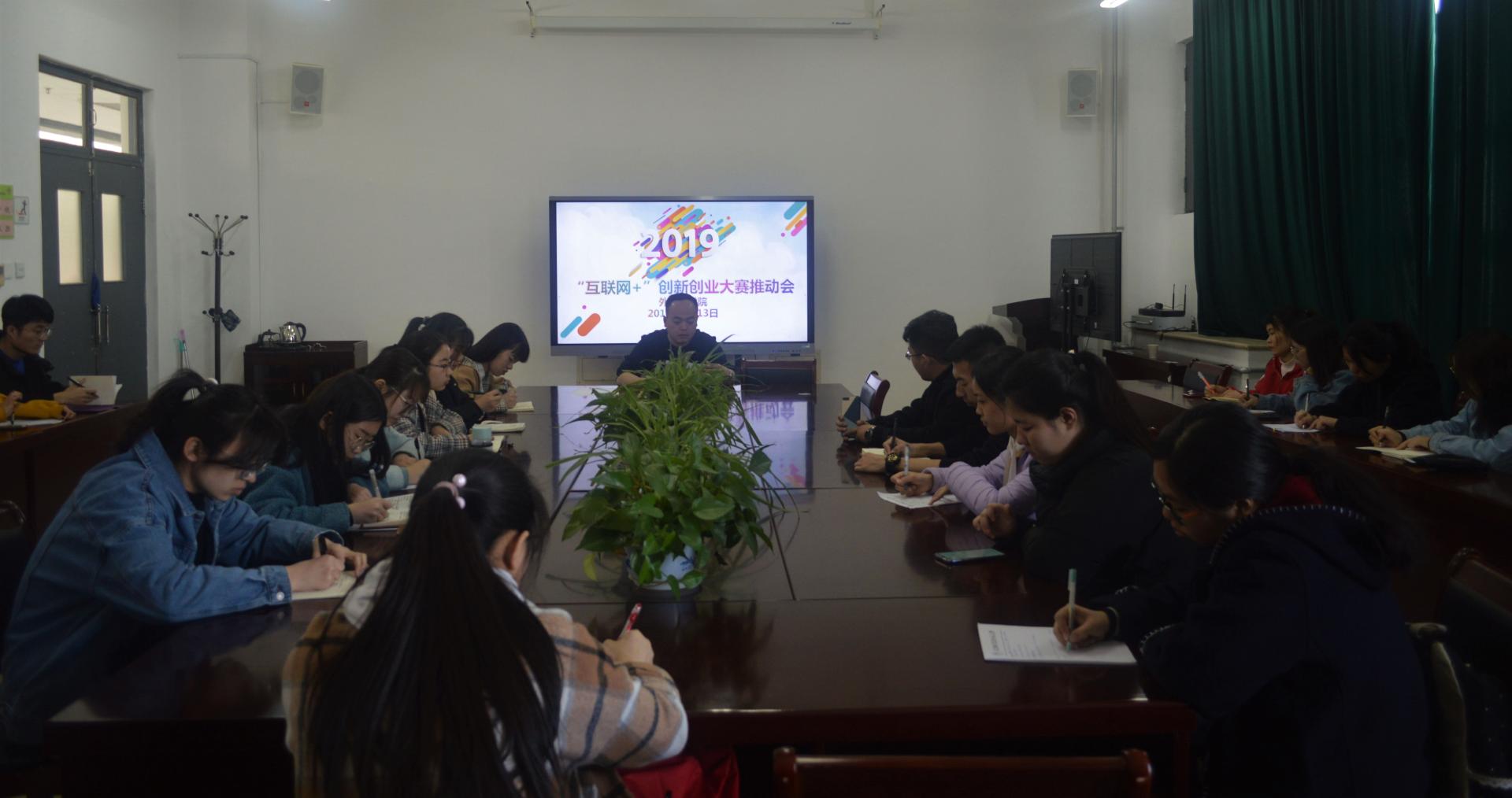2019年3月13日,耽美漫画 召开第五届“互联网+”大学生创新创业大赛推动会。学院党委副书记崔岩松、辅导员安文浩老师、各班就业创业委员参加。