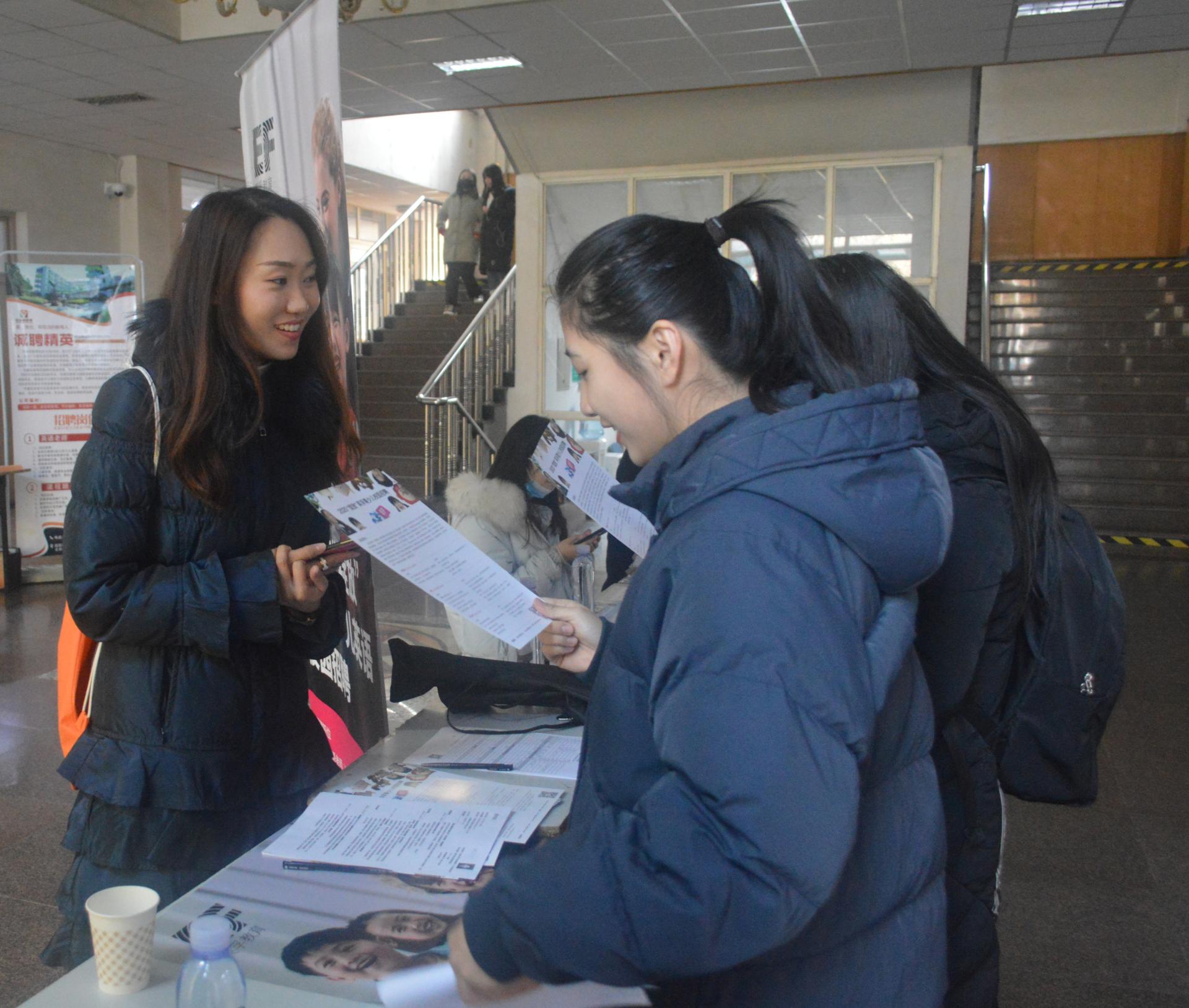 在阶梯教学楼举办2019年语言类专场招聘会。华兰国际幼稚园、天津樱旭企业管理服务有限公司、北京悦睿辰教育等优质企业应邀参加招聘会,现场提供近30个与英语、日语、汉语国际教育专业相关的就业岗位,吸引近百名毕业生参加。