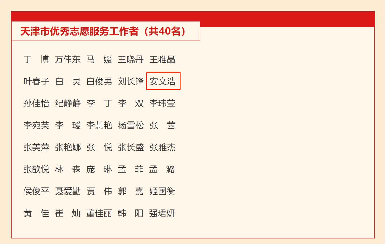 团委书记安文浩获评天津市优秀志愿服务工作者。