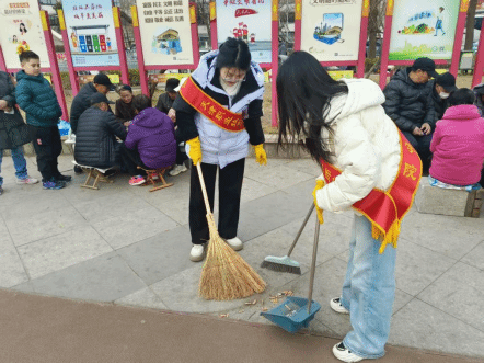 实践环节,20余名志愿者前往雷锋主题公园参观学习,追寻雷锋印记,传承奉献精神。同学们手持扫帚,认真打扫公园地面,清捡垃圾,对公园环境进行全方位的整治,为市民提供了一个更加整洁的环境。此外,志愿者们还与社区居民进行互动,进行雷锋精神知识问答游戏,增加了活动的趣味性和互动性。